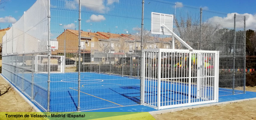 - Avec des enceintes de protection et une clôture de périmètre en grillage Hercules galvanisé, 4 mètres en arrière-plan et deux mètres sur les côtés + un filet supplémentaire pour compléter les 4 mètres.
